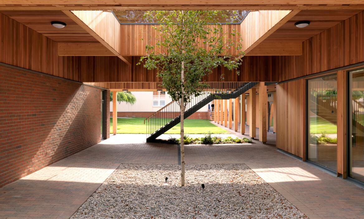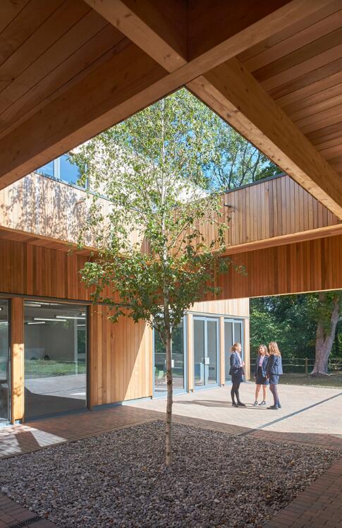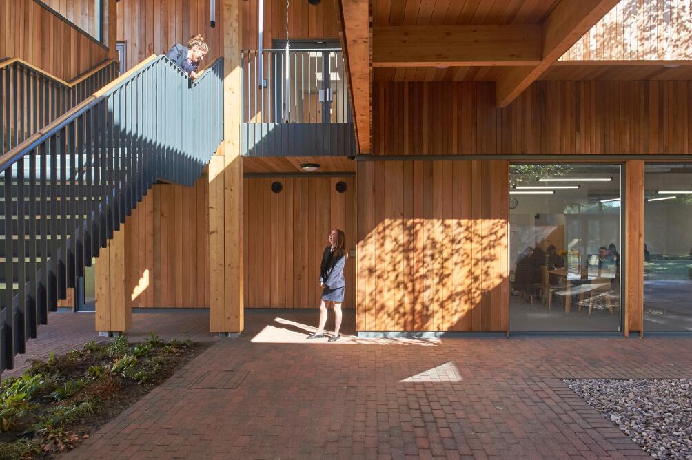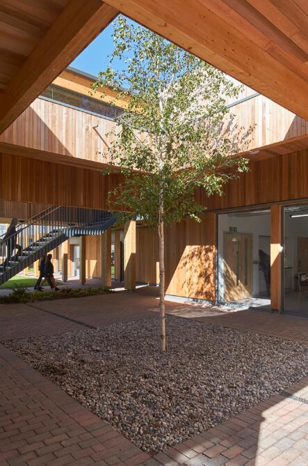 自然在这里作为重要的组成部分贯穿整个项目,从正式的庭院空间到室外的“林地”教室,再到那些穿过屋顶生长的树木,本项目旨在利用周围尚未充分利用的绿地元素。