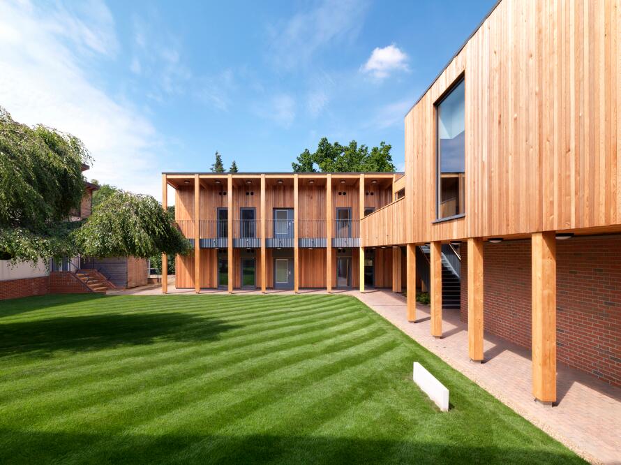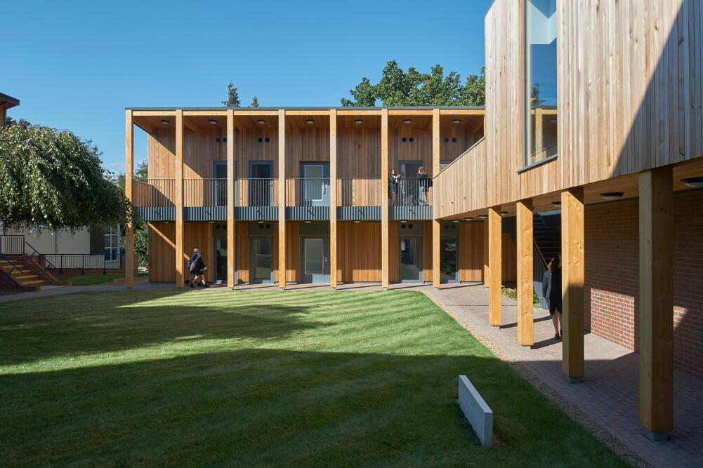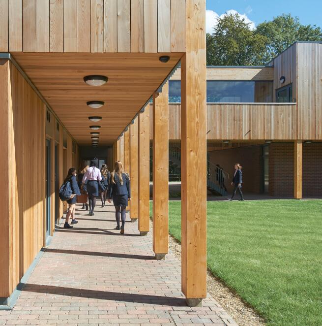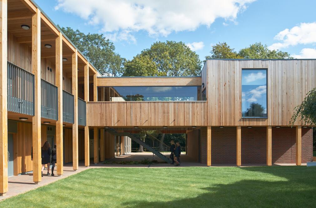 圣特蕾莎学校是一所独立的女子学校,位于Surrey山的一片绿带之中,景色优美。本案是 IF_DO建筑事务所为圣特蕾莎学校设计的10年总体规划的第一阶段,其目的是在改善学校的建筑品质的同时,将场地内的主要教学区域重新连接到周围的自然景观之中。